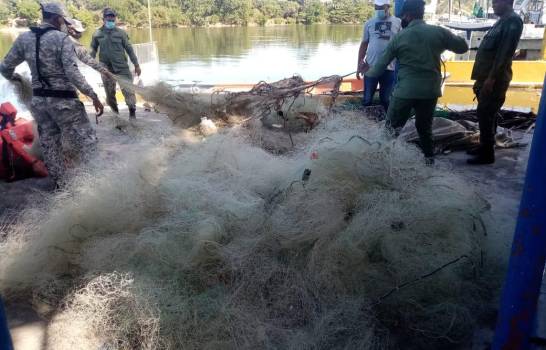 Las autoridades se incautaron de decenas de redes de pesca ilegal y detuvo a 11 pescadores en el litoral Sur, comprendido entre el Parque Nacional Submarino La Caleta hasta el estuario del rio Nigua.