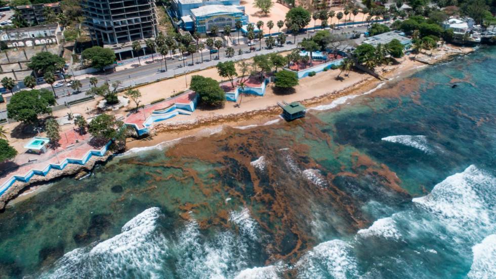 En Santo Domingo es notable la presencia de esta macro alga marina, que se mueve de este a oeste con los vientos y corriente.