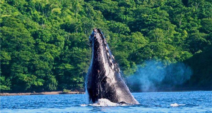 El Parque Nacional Marino Ballena es uno de los más visitados de Costa Rica, pues es relativamente frecuente observar a las ballenas jorobadas apareándose, jugando o paseando con sus crías.