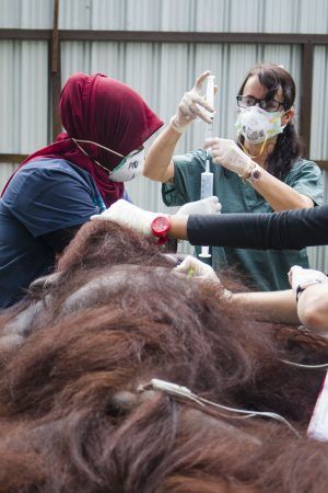 Muchos ejemplares de orangutanes, al igual que los jabalíes, los lobos o los osos en España, o los de cualquier especie que ven invadidos sus espacios, están invadiendo las zonas urbanas en búsqueda de comida, por lo que entre los trabajos que realizan en las onegés, está la mediación con los agricultores que optan por eliminar a los ejemplares, o los de educación a la población.