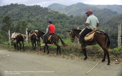 Por teléfono las buenas noticias llegaban, nos informaron del inicio de la bajada de los bomberos forestales y parte del personal de las brigadas del Ministerio de Medio Ambiente, que durante once días habían batallado con las llamas en Las Guácaras, dentro del Parque Nacional J. Armando Bermúdez. A la altura del puente sobre el río Bao que conduce a Sabaneta, encontramos a Reino Tejada; venía con cuatro mulos sin carga, había subido muy temprano a llevar comida para los que quedaron vigilando los cortafuegos.