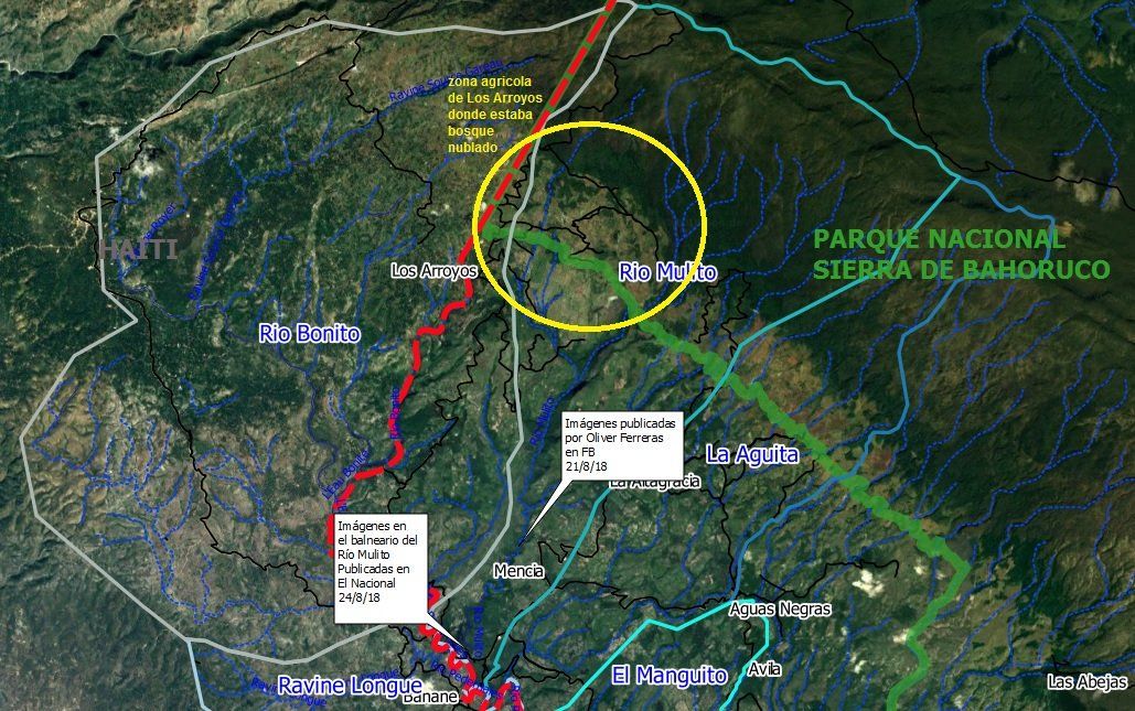 Desde hace mucho tiempo, ambientalistas de la zona e instituciones de mucho prestigio como el GRUPO JARAGUA han venido alertando sobre el daño irreversible a los bosques nublados y muy húmedos del Parque Nacional Sierra de Bahoruco, que está siendo talado para plantar esencialmente aguacates, papas y cebollas. En la medida que se degradan sus bosques, merma el agua que debe ir a la cuenca de los ríos que nace allí, como el Mulito.