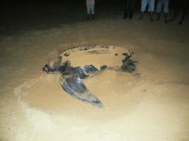 Las tortugas marinas están amenazadas por reducción de las playas de anidación debido a la construcción de infraestructuras fijas, presencia de desechos sólidos (plásticos), la deforestación de la vegetación costera y el consumo de su carne y sus huevos.