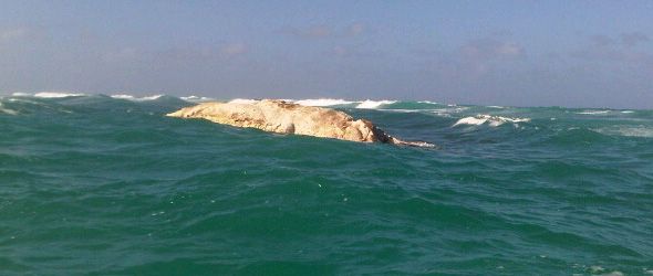 El cadáver del mamífero –que estaba visible desde la orilla- fue avistado alrededor de las 3:00 de la tarde y se supone es una de las ballenas jorobadas que surcan el océano para aparearse en las aguas calidas del país.