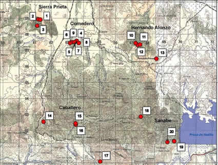 Fruto de estos trabajos fue, además de la localización de las cavernas reportadas con anterioridad, el descubrimiento de un abrigo con petroglifos y una cueva con pinturas en la zona de Comedero Arriba: el abrigo de Vinicio y la guacara de Fabeth; una caverna con pictografías en Sierra Prieta: la guacara de Los Pozos; dos cuevas con pictografías en Hernando Alonso en la zona de Hoyo de Sanabe: la guacara de la SEF y la guacara de Jenny y tres cavernas más con petroglifos en la zona de Caballero: las guacaras de La Ventura, Los Caluche y Los Cacaos.