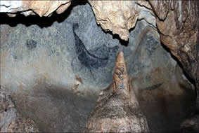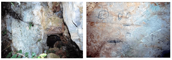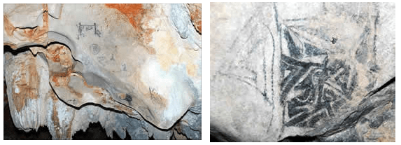 Algunas de las pinturas de la caverna son francamente impresionantes; destaca una gran ave, de unos 60 cm., de anchura que representa un coco prieto (Plegadis falcinellus). También encontramos dos figuras humanas en pareja, una mayor que la otra, realizadas con gran