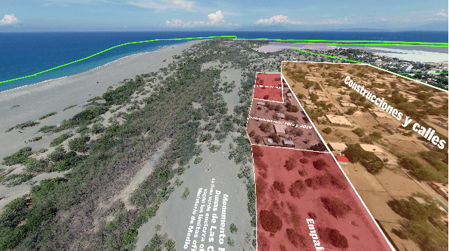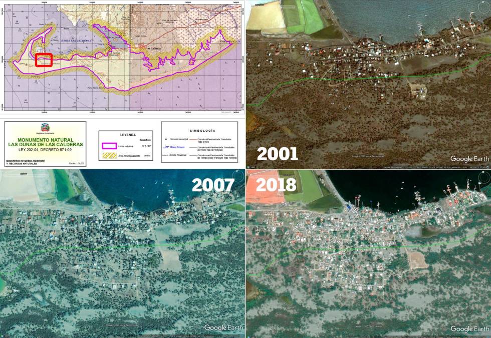 A diferencia de los que argumentan que la zona invadida está dentro de la zona de amortiguamiento del área protegida, cuando se sobreponen los polígonos con las coordenadas oficiales del Sistema de Áreas Protegidas, con imágenes satelitales de Google Earth, es evidente que los terrenos invadidos están 100 % dentro del denominado Monumento Natural Las Dunas de Las Calderas.