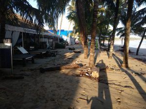 Ministerio de Medio Ambiente dió la orden de quitar los sacos de arena que desfiguran la playa e impiden el flujo natural de la arena. Lo que hicieron algunos bares y restaurantes es de esconder los sacos con arena y cogiendo mas espacio en la playa. Con el oleaje fuerte que hubo últimamente, se descubrí que desacataron el orden porque la arena arriba de los sacos se fue con el mar como es el caso de Ojo bar.