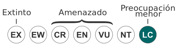 Catalogada en la lista de especies amenazadas de la IUCN como “Preocupación Menor”.