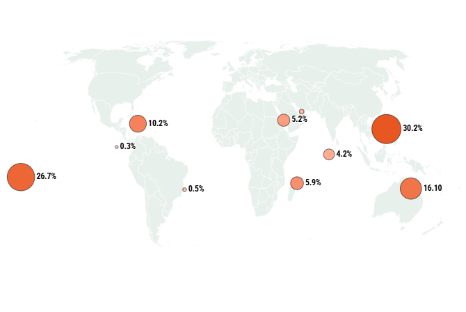 Fuente: Red Mundial de Monitoreo de Arrecifes de Coral, informe 2020, Coral Watch • Gráfico por Gabriela Carrasquillo Piñeiro