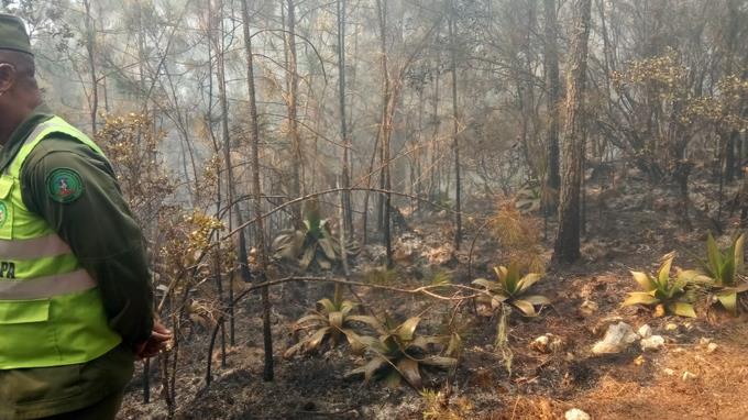 Alexandro Hernández, encargado de Medio Ambiente en esa demarcación, aseguró que tanto él como varias brigadas de protección forestal han tenido que internarse por varios días en las áreas donde el fuego ha provocado más estragos y trabajar arduamente con el fin de sofocar las llamas.