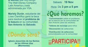 Mariely Durán, estudiante del Liceo Científico Dr. Miguel Canela Lázaroha recibido una beca de Amigos por el Mundo, otorgada por Disney, para realizar un proyecto ambiental que generará un cambio positivo en el planeta Salcedo, República Dominicana. Mariely Durán de 14 años, liderará un proyecto ambiental en su comunidaddurante el ...