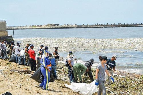 Brigadas trabajan desde el viernes en retirar la basura playa de Güibia, la zona de Montesino y del Obelisco Hembra y, hasta el momento, «hemos recogido 350 toneladas de basura y estimamos que al finalizar la jornada, en 48 horas, habremos recogido 950 toneladas», dijo al visitar la zona.