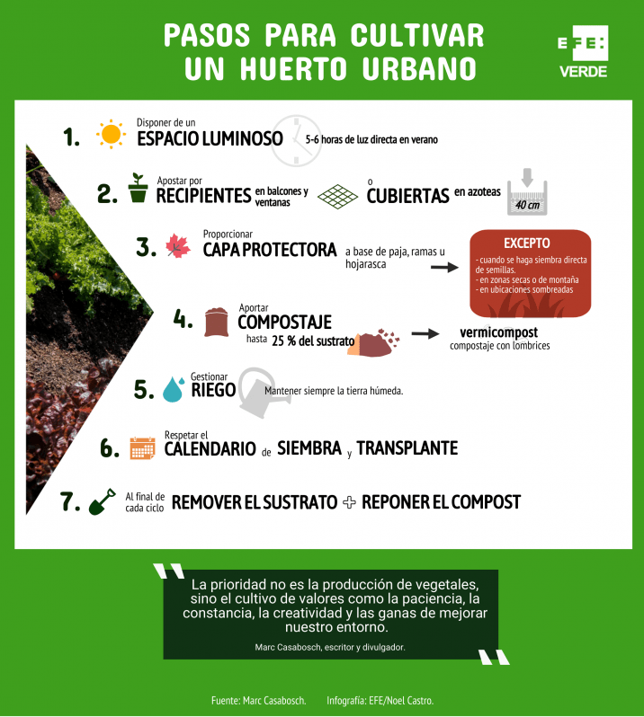 El escritor y divulgador Marc Casabosch ha compartido con EFEverde una serie de consejos para poner en práctica un huerto urbano, una actividad que “cada uno puede llevar a cabo en su medida y espacio”, ha explicado.