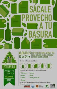 Con la convocatoria “Sácale provecho a tu basura” y teniendo como escenario el Centro Cultural de Brasil RD, la organización ECOBASURA, llevará a cabo hoy, sábado 27 de agosto el Convite al Reciclaje Verano 2016, en la calle Hermanos Deligne número 56, Gazcue, Santo Domingo