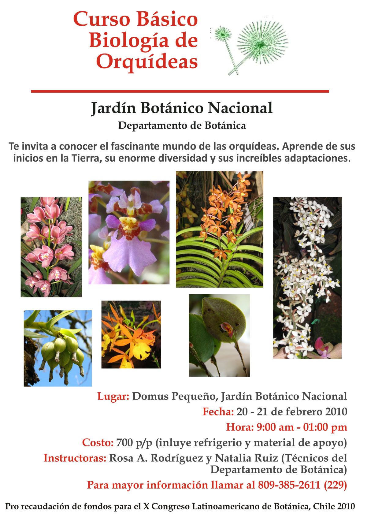 Curso de biología básica de Orquídeas febrero 12, 2010 :: Articulos, :: Asi Andamos El Jardín Botánico Nacional les invita al Curso Básico: Biología de Orquídeas, orientado a todos los amantes de este fascinante grupo de plantas. Para mayor información favor llamar al Departamento de Botánica: 809-385-2611 (229) básica biología Botánico Curso Jardín Orquídeas 2010-02-12 Redaccion Compartir tweet