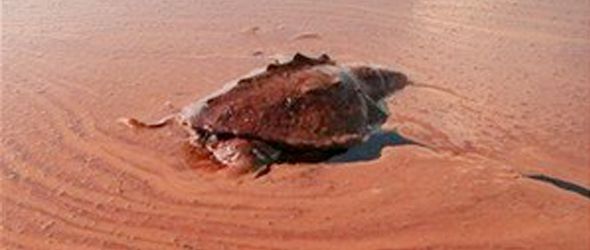 Una tortuga muerta flota en la bahía de Barataria, frente a las costas de Louisiana, a causa del derrame de petróleo que el presidente Barack Obama comparó con los atentados del 11 de septiembre. Según las autoridades estadounidenses, la fuga de crudo se sitúa entre 20.000 y 40.000 barriles diarios de los que BP recupera al momento unos 15.000 barriles al día.AP