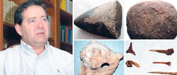 Según el arqueólogo, “en el asentamiento hemos encontrado, en superficie, montones de conchas, de espinas de peces de mar muy grandes, realmente grandes, y hemos hallado restos de cerámicas y de hachas pulidas”.