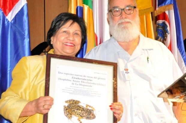 La ministra de Educación superior, Ciencia y Tecnología (MESCyT ), Ligia amada Melo, fue distinguida por un grupo de investigadores que en su honor pusieron su nombre a una nueva especie de rana nativa de La Hispaniola.