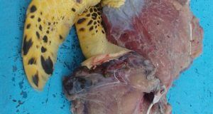SANTO DOMINGO. En un trabajo conjunto de las direcciones provinciales de La Romana y La Altagracia, fueron apresadas 5 personas, tras ser sorprendidas con carne de tortuga carey en Isla Saona.