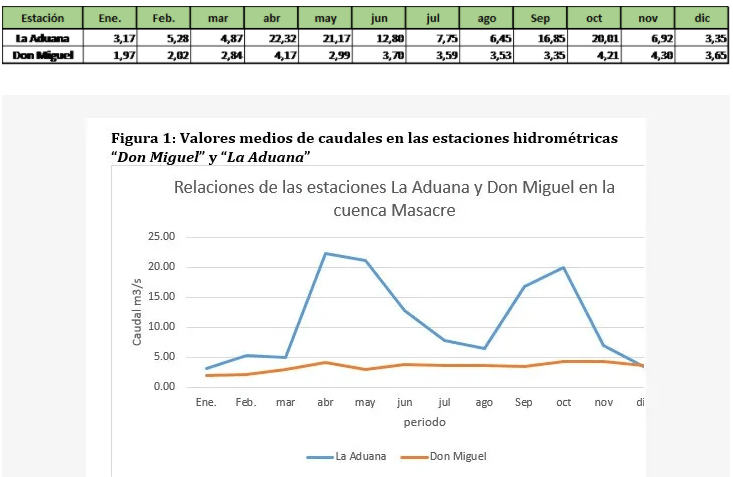 Cuadro 1: Caudales promedio río Masacre en las Estaciones hidrométricas “Don Miguel” y “La Aduana”