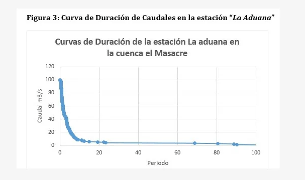 Conviene mencionar que la serie de tiempo de la estación hidrométrica “Don Miguel” es de 45 años, mientras que la serie de tiempo que estaba disponible para este análisis en la estación “La Aduana” es de 9 años. La estación hidrométrica “La Aduana” no es muy extensa, por lo que los planteamientos de conclusiones que puedan hacerse estarán limitados por la insuficiencia de datos, considerando además los efectos de la variabilidad climática. La conveniencia de desarrollar un modelo hidrológico para la cuenca del río Masacre es muy evidente y aconsejable, a los fines de disponer de mayor conocimiento sobre el régimen de escorrentía en esta cuenca hidrográfica.