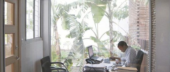 En la iluminación del edificio el proceso fue similar. El análisis objetivo siempre es la herramienta más poderosa a la hora de reducir. Sin dejar de lado las valoraciones y las normativas sobre los niveles de iluminación que requiere cada espacio, buscamos obtener el estándar de iluminación sobre la superficie de trabajo. En las oficinas convencionales vemos cómo todo el espacio está equitativamente iluminado entre 30-50 fc, pero nosotros nos fuimos un poco más allá. Primero, dejamos entrar la luz natural a la mayor cantidad de espacios posibles, con lo que logramos que alrededor del 75% de los espacios puedan trabajar buena parte del día sin luz artificial, y segundo, empezamos a preguntarnos ¿leo yo, trabajo yo en la esquina donde voy a colocar una planta o una escultura, o en el pasillo de acceso a la oficina? Pues no, y como no leo yo, ¿por qué íbamos a desperdiciar esa energía? Y aquí empieza la eficiencia. La mayoría de las personas desarrolla sus actividades sobre su escritorio o mesa de trabajo. ¿Por qué iluminar igual todas las áreas si cada una de ellas constituye en sí misma un espacio con usos diferentes? Seleccionando tecnologías eficientes de iluminación como LED, bombillas fluorescentes compactas y tubos fluorescentes T5, que nos han permitido reducir la potencia instalada de la iluminación en un 50%, y nos ayudó a comprender como ingenieros y arquitectos, que cada espacio es único en sus necesidades, y que para lograr la eficiencia se necesita tomar en cuenta, en el diseño y en la práctica, estas necesidades del espacio, para que los usuarios puedan vivir el diseño sin que se le rompa el bolsillo.