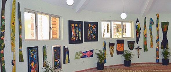 ¿Pinturas alargadas y silueteadas? La clave está en el soporte. Detrás de los óleos y acrílicos de las imágenes no hay lienzo, sino pedazos de acacia mangium, caoba criolla y otros 40 tipos de madera que el cantautor y artista plástico dominicano Alberto Peralta Guzmán evitó que fuera quemada y convertida en carbón.