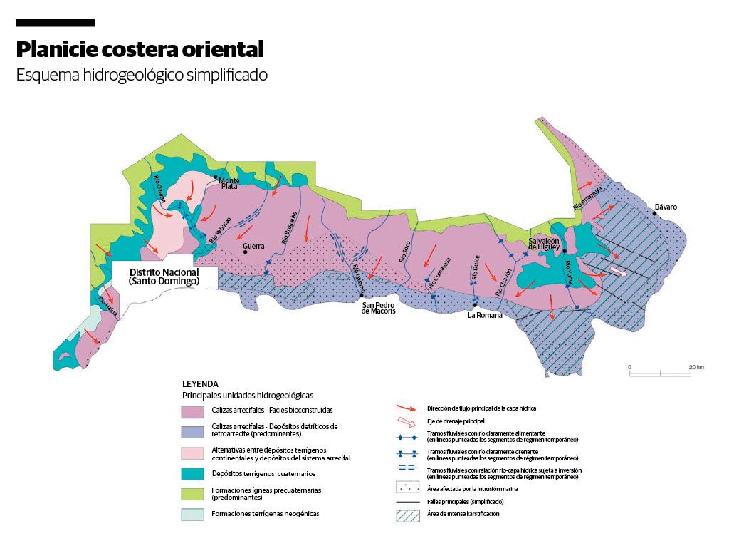 En 1999, un informe del Inapa alertaba que el espesor de la capa de agua dulce sobre el agua de mar en San Pedro de Macorís, difícilmente superaba los 10 primeros metros. Atribuía el deterioro progresivo del acuífero a la forma en que habían sido ubicados los pozos de explotación con respecto al mar, combinado con una extracción de las aguas sin tener en cuenta ningún estudio hidrogeológico.
