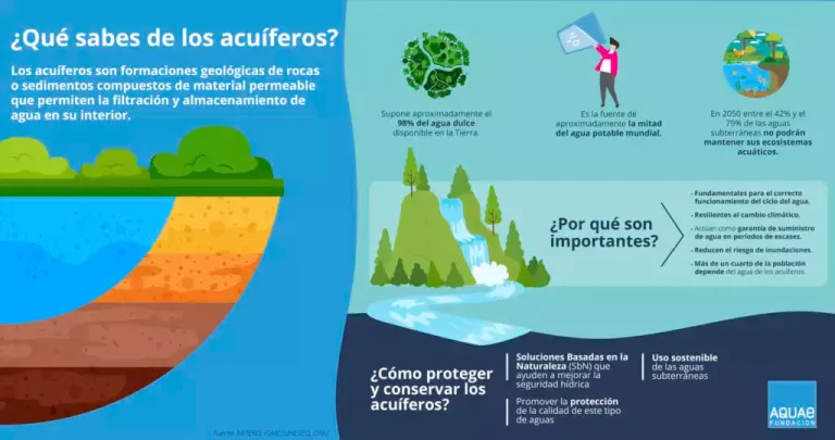 A través de la divulgación queremos transmitir la importancia de las aguas subterráneas para el planeta, así como crear conciencia sobre la necesidad de actuar para frenar su sobre-explotación que ya amenaza su disponibilidad. Y lo hacemos a través de esta infografía en la que analizamos la importancia de los acuíferos y sus principales riesgos: