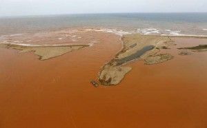 El vertido ocurrido el 5 de noviembre pasado, y que ha dejado impresionantes imágenes aéreas dando cuenta de su magnitud, se produjo luego de la ruptura de dos depósitos de mina de hierro. La llegada al océano Atlántico de los materiales tóxicos ha propiciado la muerte de miles de peces durante el trayecto.