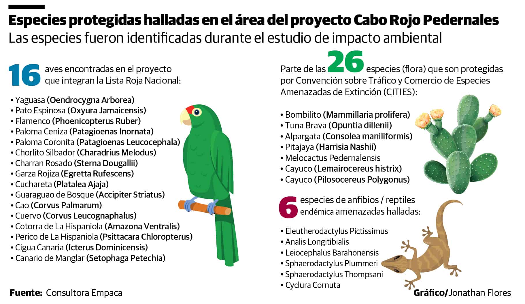 A ese cuadro, que sólo se concentra en la zona que ocupará la primera fase del proyecto, se añade un humedal que está en el corazón del área de desarrollo y que está protegido por el Acuerdo de Ramsar, un convenio internacional para la protección de humedales del cual República Dominicana es signatario.