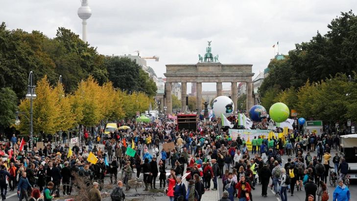 El anuncio coincidió con una manifestación de miles de personas, 80.000 según los organizadores, que se congregaron en el centro de Berlín, junto a la emblemática Puerta de Bradenburgo, para exigir más medidas gubernamentales contra el cambio climático, en el marco de una huelga mundial.