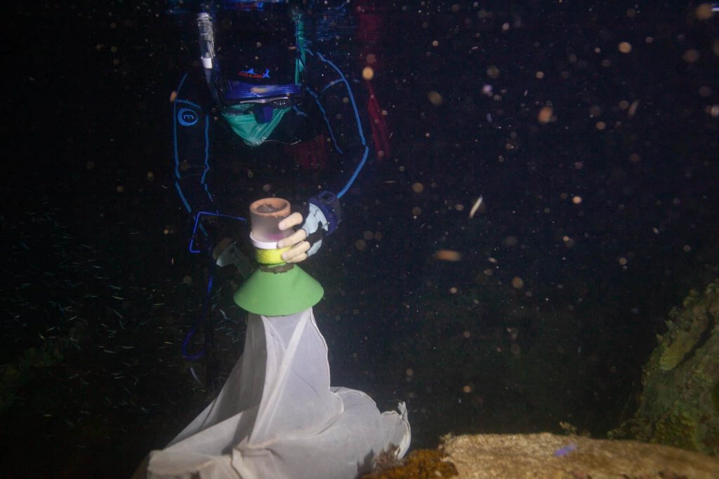 El viernes 4, Yulissa se lanza al agua un poco más temprano, ya sabe que esa noche será buena. Pocos minutos después avisa a Sellares y su equipo que hay muchas colonias con «setting«. Todos se preparan para el desove.