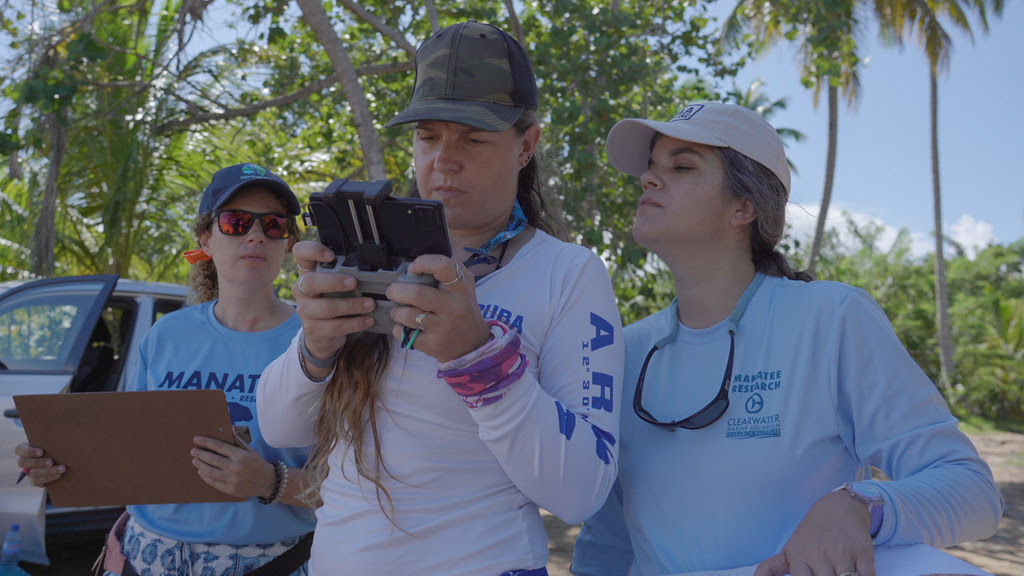 A cargo de la búsqueda visual están Marvin del Cid y Rachel Plekaniec, quienes tienen varios años trabajando con drones y manatíes, en especial los monitoreos constantes de Juana, Pepe y Lupita, tres manatíes liberados en 2021 en Bayahíbe, los cuales permanecieron en cautiverio en el Acuario Nacional.