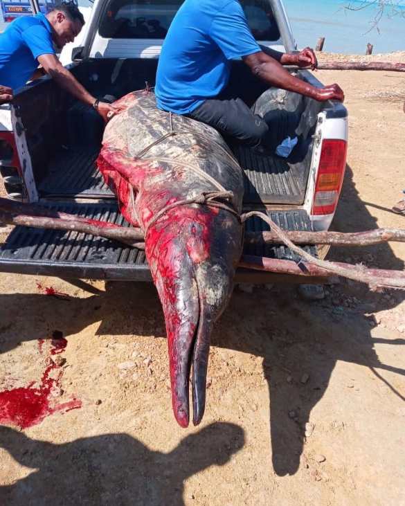 Asimismo, rectificó que al momento de encontrar el zifio la mañana de este lunes en la orilla de la playa, pescadores aún sin identificar le cortaron parte de su cuerpo, razones por la que estarán dando seguimiento para determinar si esta especie estaba muerta o viva, al momento de sacrificarla.