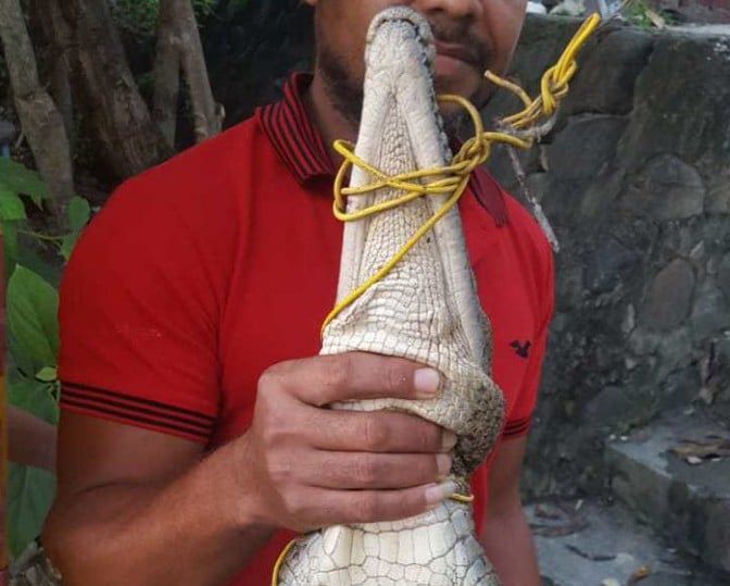 Santo Domingo, República Dominicana.– El Ministerio de Medio Ambiente recibió este sábado un pequeño cocodrilo que habitaba en una cañada del sector de Sabana Perdida, Santo Domingo Norte, que había sido capturado por un hombre que se resistía a entregarlo a las autoridades.