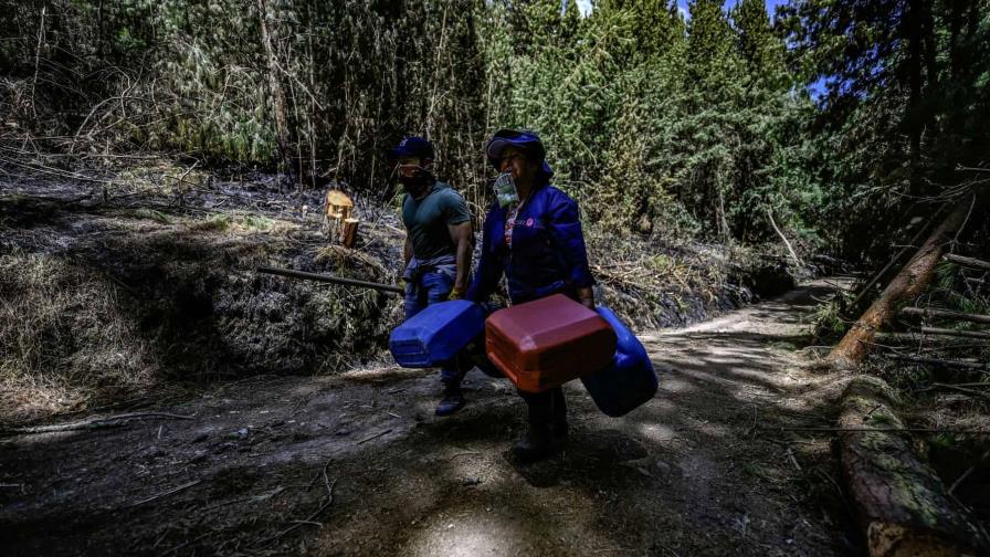 En la capital, Bogotá, una espesa columna de humo brota de la cadena montañosa que limita la ciudad de ocho millones de habitantes. El sonido de los helicópteros que vierten agua sobre las llamas retumba todo el día en el oriente.