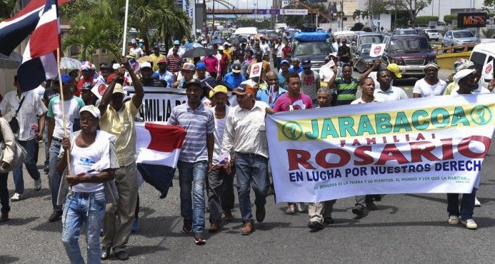 Los comisionados llegaron en peregrinaje pasado el mediodía de ayer junto a decenas de integrantes de las citadas familias hasta las afueras del Palacio Nacional procedentes de Pueblo Viejo, en Cotuí, provincia Sánchez Ramírez, y otros pueblos de la zona, desde donde salieron el pasado sábado haciendo escalas, la última de las cuales fue en el Kilómetro 9 de la Autopista Duarte, desde donde caminaron ayer hasta la casa de gobierno.