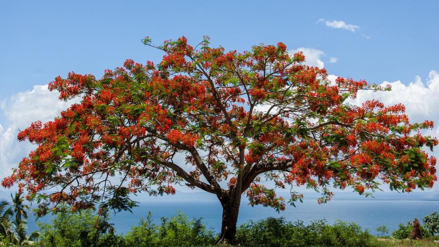 El framboyán o flamboyán (Delonix regia) es uno de los árboles más vistosos del Caribe. Originario de Madagascar, fue introducido en América tropical en el siglo XIX por su espectacular floración roja y su potencial como sombra ornamental en zonas urbanas y rurales.