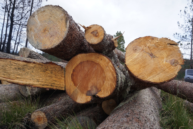 Según nuestro levantamiento se ha acopiado una cantidad aproximada de 210 troncos. Se trata de pinos que fueron cortados para crear trochas contra-fuego, y que fueron en su momento debidamente marcados por el Ministerio de Medio Ambiente y Recursos Naturales. Dichas marcas nos permitieron identificarlos, por lo que informamos a la población que no se trata de tala de pinos posterior o ilegítima.