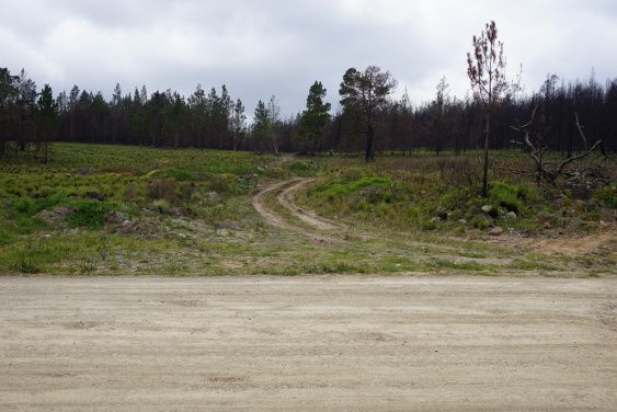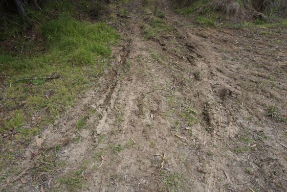 Suministramos imágenes en las que se puede observar la entrada a los dos puntos de acopio a partir de las huellas dejadas por el camión, así como la vista desde la vía principal del parque hacia las dos ubicaciones de los troncos. Como puede apreciarse, un visitante común del parque no se percataría de estas acciones a simple vista.