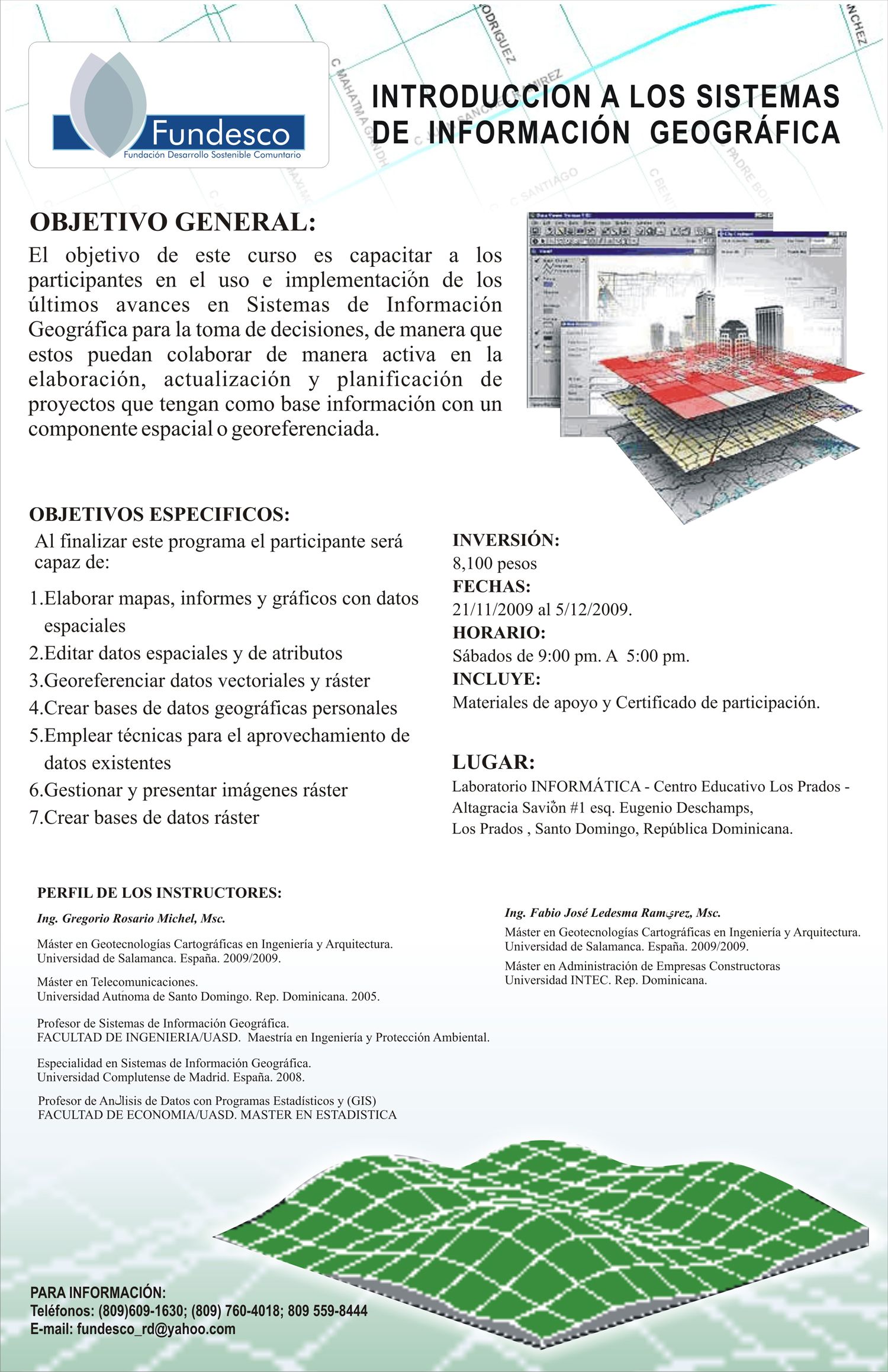 Introduccion Sistemas de Información Geografica. FUNDESCO. noviembre 4, 2009 2009-11-04 Redaccion Compartir tweet