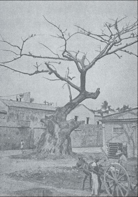 En la siguiente imagen de finales del siglo XIX, se puede ver la ceiba ya envejecida.