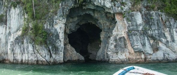 El paisaje es espectacular y a los pocos minutos de estar en el agua puede verse la entrada a la cueva en la distancia y en el lado opuesto el muro de la presa.