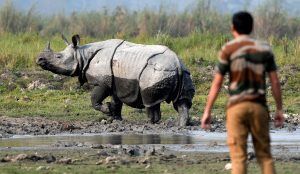 El Parque Nacional, declarado Patrimonio de la Humanidad, está situado en el corazón del Estado de Assam y abarca una de las pocas zonas de la India septentrional que no han sufrido alteraciones por la presencia del ser humano. Cuenta con la población de rinocerontes de un solo cuerno más numerosa del mundo, así como muchos otros mamíferos como tigres, elefantes, panteras y osos así como miles de aves.