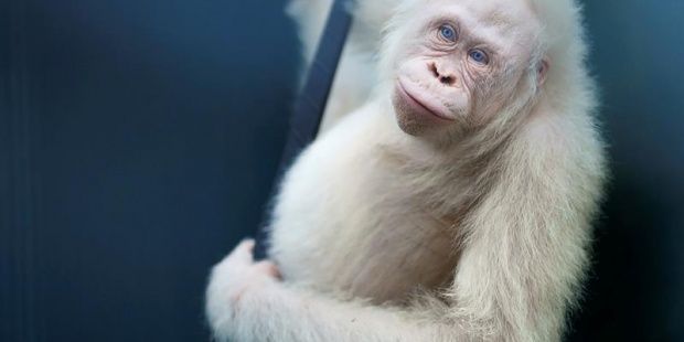La orangutana Alba, el único ejemplar albino de esta especie que se conoce en el mundo, fue liberada hoy en un bosque protegido en la parte indonesia de la isla de Borneo, un año y medio después de ser encontrada malnutrida en una jaula.