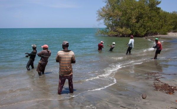 Es mediodía de un viernes. Ocho pescadores –dominicanos y haitianos- tratan de huir en su bote al confundir al equipo no identificado de prensa con supervisores del Ministerio de Medio Ambiente. Se percatan del error, y llegan a la orilla de una playa en la ensenada de Estero Balsa, un área protegida dentro del Parque Nacional Montecristi. Se dividen en dos grupos de cuatro y empiezan a halar con fuerza unas largas cuerdas. La meta es sacar del mar un viejo chinchorro.