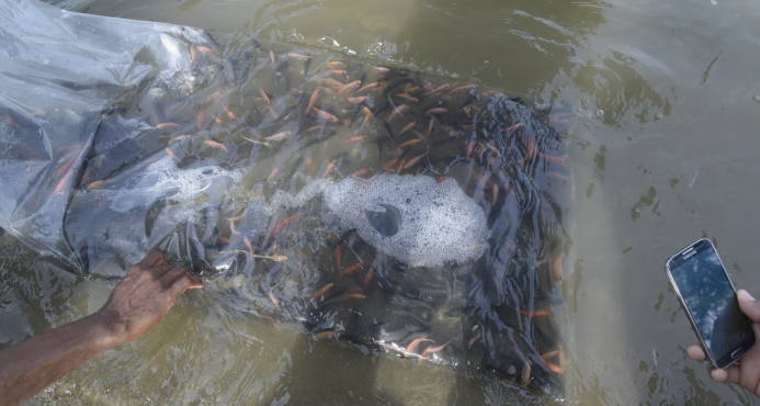 En total fueron lanzados al río 10 mil alevines de las especies carpas y tilapias.