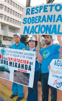 Con el lema “Acudir en defensa de la Loma Miranda es una cita de honor”, el grupo de jóvenes Levántate se opuso ayer a la explotación minera de la empresa canadiense Xstrata Nickel en Loma Miranda, en una manifestación realizada en la intersección de las avenidas 27 de Febrero y Winston Churchill, en el Distrito Nacional.